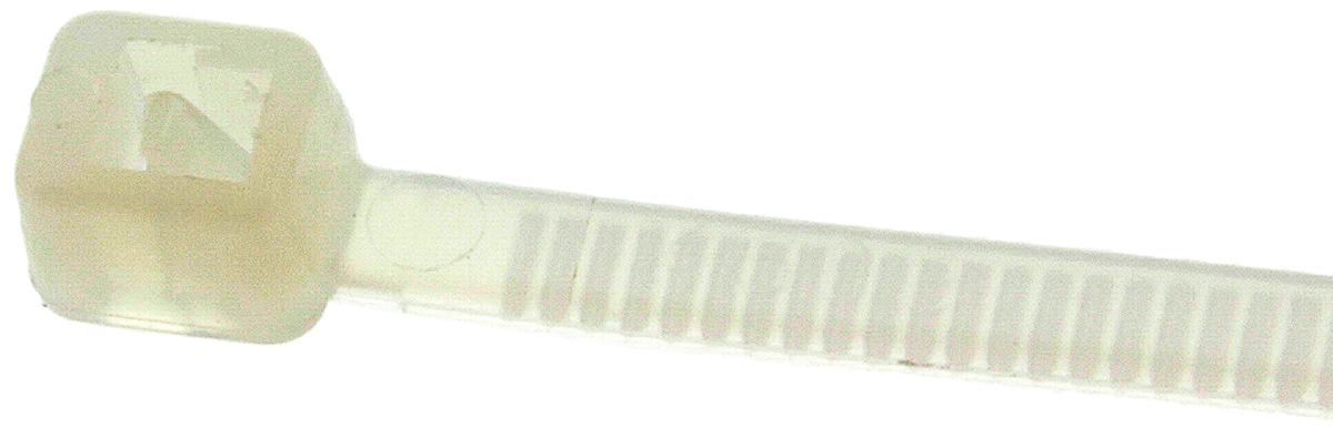 This is Natural Nylon Cable Tie 142mm x 2.5 mm manufactured by RS Pro. The manufacturer part number is 811-1704. The product has a flame retardant fire behaviour. Whereas, the minimum operating temperature of the product is -40°c. It has a maximum operating temperature of +85°c. It has a decent natural colour. The product is made from highly stable and reliable nylon 66. The product has an added tensile strength of 78.4n. It has a UV resistant feature no . Furthermore, the product is 2.5 mm wide. Its accurate length is 142mm. The bundle has a maximum diameter of 35mm. It comes in non-releasable configuration. Available in 100 quantity.
