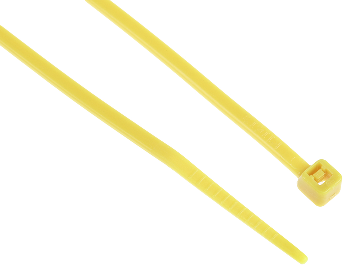 This is Yellow Nylon Cable Tie 203mm x 2.5 mm manufactured by RS Pro. The manufacturer part number is 233-310. The product has a flame retardant fire behaviour. Whereas, the minimum operating temperature of the product is -40°c. It has a maximum operating temperature of +85°c. It has a decent yellow colour. The product is made from highly stable and reliable nylon 66. The product has an added tensile strength of 78.4n. It has a UV resistant feature no . Furthermore, the product is 2.5 mm wide. Its accurate length is 203mm. The bundle has a maximum diameter of 55mm. It comes in non-releasable configuration. Available in 100 quantity.