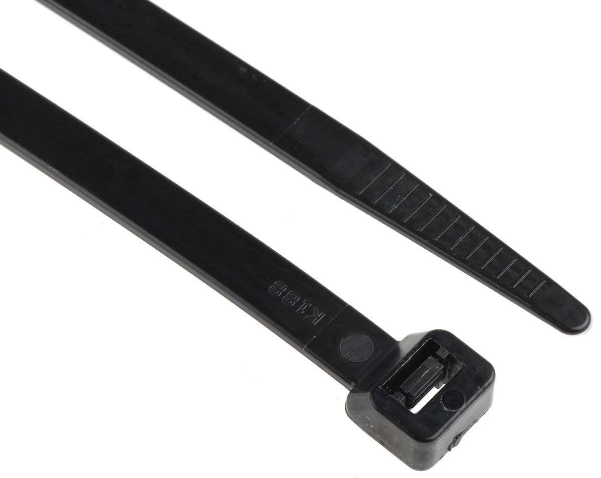 This is Black Nylon Non-Releasable Cable Tie 380mm x 7.6 mm manufactured by RS Pro. The manufacturer part number is 811-1669. The product has a flame retardant fire behaviour. Whereas, the minimum operating temperature of the product is -40°c. It has a maximum operating temperature of +85°c. It has a decent black colour. The product is made from highly stable and reliable nylon 66. The product has an added tensile strength of 534n. It has a UV resistant feature no . Furthermore, the product is 7.6 mm wide. Its accurate length is 380mm. The bundle has a maximum diameter of 105mm. It comes in non-releasable configuration. Available in 1000 quantity.