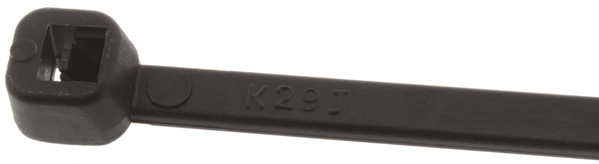 This is Black Nylon Flame Retardant Cable Tie 150mm x 3.6 mm manufactured by RS Pro. The manufacturer part number is 811-1776. The product has a flame retardant fire behaviour. Whereas, the minimum operating temperature of the product is -40°c. It has a maximum operating temperature of +85°c. It has a decent black colour. The product is made from highly stable and reliable nylon 66. The product has an added tensile strength of 176.4n. It has a UV resistant feature no . Furthermore, the product is 3.6 mm wide. Its accurate length is 150mm. The bundle has a maximum diameter of 36mm. It comes in flame retardant configuration. Available in 100 quantity.