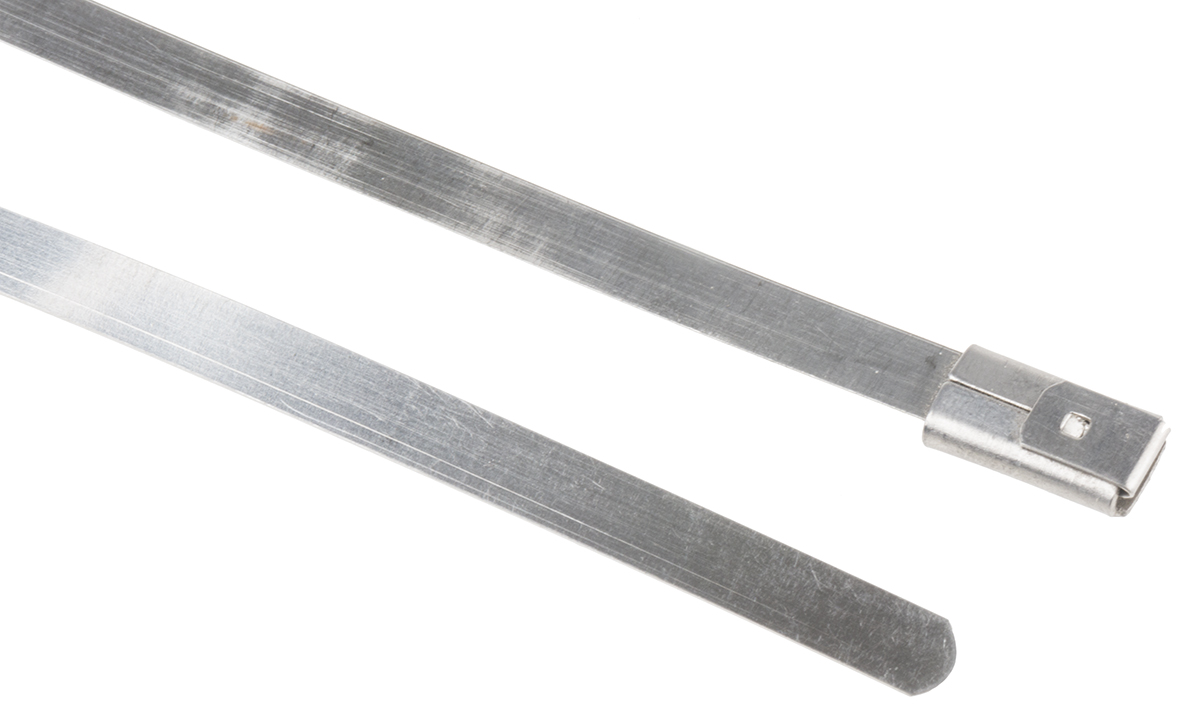 This is Metallic 316 Stainless Steel Roller Ball Cable Tie 680mm x 4.6 mm manufactured by RS Pro. The manufacturer part number is 743-6162. The product has a flame retardant fire behaviour. It has a maximum operating temperature of +538°c. It has a decent metallic colour. The product is made from highly stable and reliable 316 stainless steel. The product has an added tensile strength of 436.1n. Furthermore, the product is 4.6 mm wide. Its accurate length is 680mm. Whereas, the minimum operating temperature of the product is -80°c. The bundle has a maximum diameter of 200mm. It comes in roller ball configuration. Available in 100 quantity.