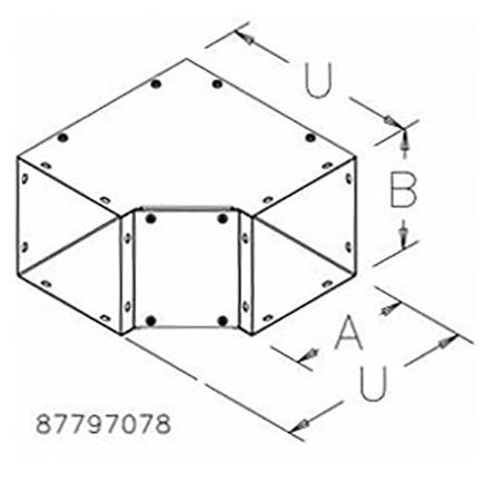 This is Cable Trunking Angle Steel Galvanised 45° Elbow Fitting manufactured by Hoffman Enclosures. The manufacturer part number is F8845EGV. Its trunking accessory type is galvanised 45° elbow fitting . The product is made from highly stable and reliable steel. The product complies with all safety standards, such as cul listed per csa c22.2 no:26, file no: e27524, iec 60529, ip30, nema/eemac: type 1, ul 870 listed.