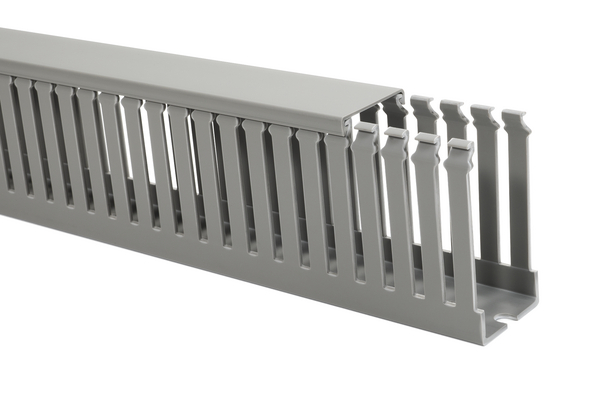Discover the HellermannTyton HTWD-PD grey slotted panel trunking, a premium-quality cable management solution designed for various electrical systems. This PVC panel trunking comes with open slots for quick and easy cable insertion, ideal for maintaining clean, professional wiring layouts. With a 25mm width, 50mm depth, and 2m length, it ensures ample capacity for routing multiple wires. The trunking features evenly spaced slots that let installers neatly route and clip wires along predefined paths. The slotted walls also make it easy to branch out individual cables as needed, while the PVC base secures them firmly in place, protecting against mechanical damage.