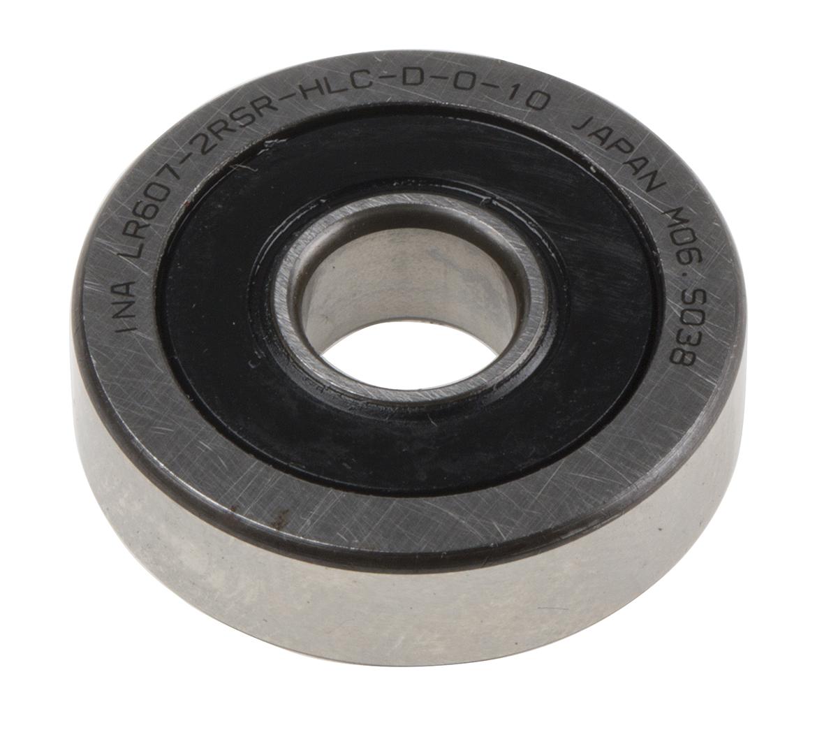 This is Yoke Track Roller 7mm ID 22mm OD manufactured by INA. The manufacturer part number is LR607-2RSR-HLC-D-0-10. It includes a roller about 6mm in length . It has 880n static load rating. It has 2250n dynamic load rating. The bore has a 7mm size. It comes in yoke configuration. Its roller diameter is about 22mm .