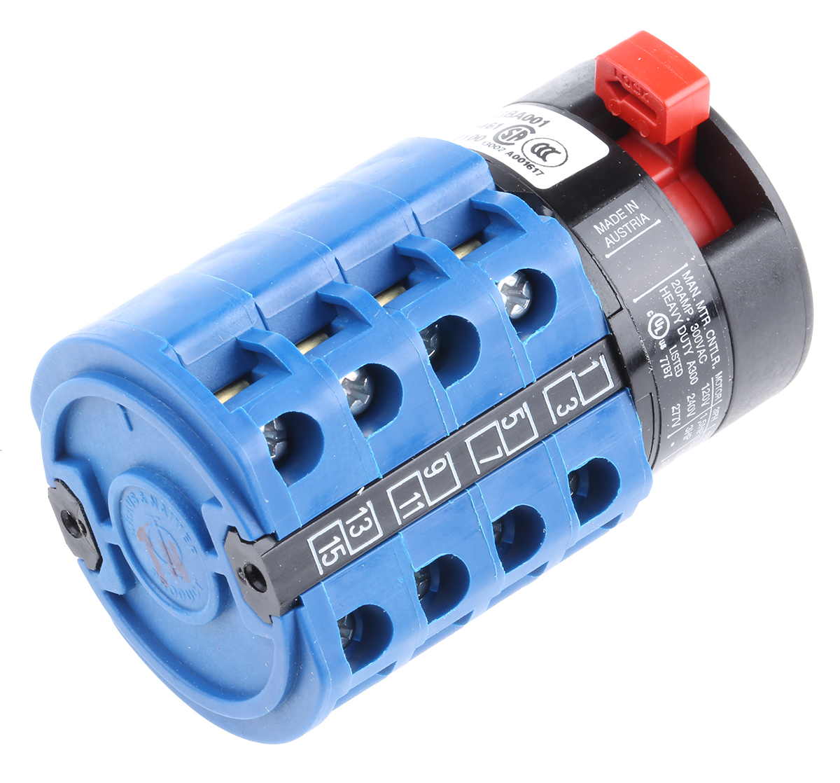 This is 3 positions 60° Rotary Switch 690 V 20 A Rotary Knob manufactured by Kraus & Naimer. The manufacturer part number is CA10A213/GBA001*FT. Its accurate length is 80.2mm. It also carries 20a maximum current.