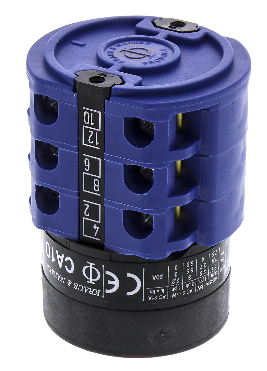 This is 2 positions 60° Rotary Switch 690 V 20 A Rotary Knob manufactured by Kraus & Naimer. The manufacturer part number is CA10A342/GBA001*FT. Its accurate length is 48mm. It also carries 20a maximum current.