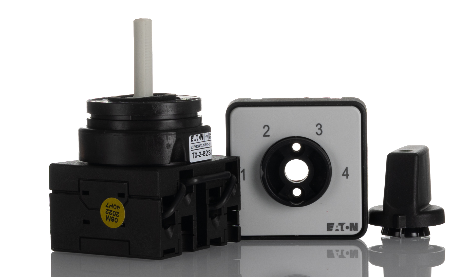 This is SPST 4 Position 60° Rotary Switch 690V ac 20A manufactured by Eaton. The manufacturer part number is 012750 T0-2-8231/E. The product is available in flush mount configuration. It also carries 20a maximum current. It has a throw angle 60°. It has a maximum 690v ac voltage . Its accurate length is 86mm. The product carries possible position value of 4. Furthermore, the product is 48mm wide. The product comes in 86mm depth. The product carries toggle actuator. Its electrical phase configuration includes 1, 3. The normal state configuration includes no. It has spst pole and throw configuration. The terminal is a screw type. The given dimensions of the product include 48 x 86 x 48mm.