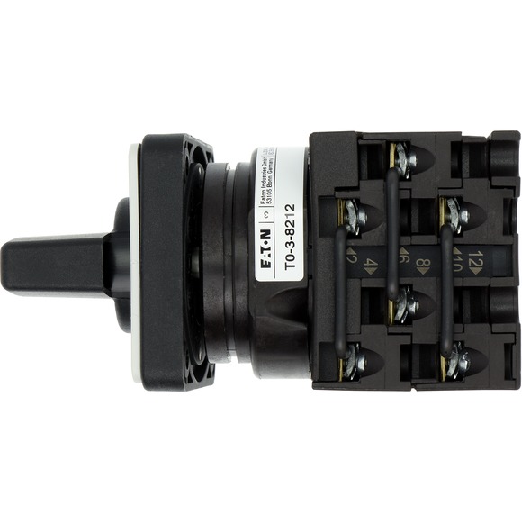 This is 3PST 3 Position 60° Changeover Switch 690V ac 20A manufactured by Eaton. The manufacturer part number is 029353 T0-3-8212/E. The product is available in flush mount configuration. It also carries 20a maximum current. It has a throw angle 60°. It has a maximum 690v ac voltage . Its accurate length is 48mm. The product carries possible position value of 3. Furthermore, the product is 100mm wide. The product comes in 48mm depth. The product carries rotary actuator. Its electrical phase configuration includes 1, 3. The normal state configuration includes 3no. It has 3pst pole and throw configuration. The terminal is a screw type. The given dimensions of the product include 48 x 100 x 48mm.