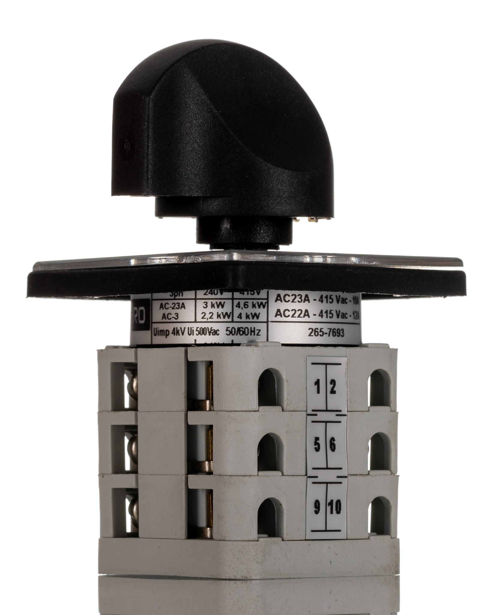 This is 3P 3 Position 60° Changeover Cam Switch 500V ac 12A Knob Actuator manufactured by RS PRO. The manufacturer part number is 265-7693. The given dimensions of the product include 50 x 50 x 82.3mm. It also carries 12a maximum current. It has a maximum 500v ac voltage . It has a throw angle 60°. Its accurate length is 50mm. The product carries possible position value of 3. Furthermore, the product is 50mm wide. The product comes in 82.3mm depth. The product carries knob actuator. Its electrical phase configuration includes 3. The normal state configuration includes 3co. It has 3p pole and throw configuration. The terminal is a screw type.