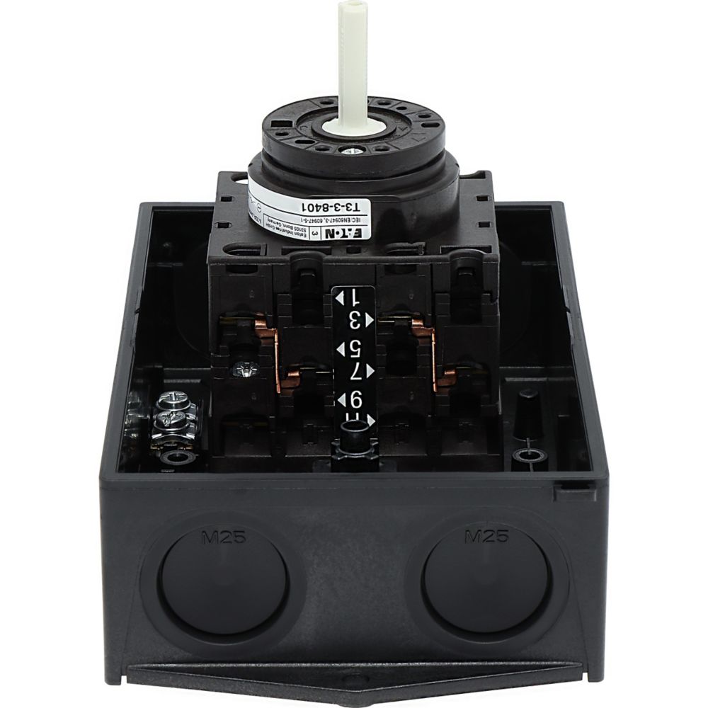This is 3P 3 Position 60° 690V ac 32A Short Actuator manufactured by Eaton. The manufacturer part number is 207188 T3-3-8401/I2. The given dimensions of the product include 181 x 100 x 127mm. The product is available in surface mount configuration. It also carries 32a maximum current. The product eaton moeller series t3, is a highly preferred choice for users. It has a throw angle 60°. It has a maximum 690v ac voltage . Its accurate length is 181mm. The product carries possible position value of 3. Furthermore, the product is 100mm wide. The product comes in 127mm depth. The product carries short actuator. Its electrical phase configuration includes 3. The normal state configuration includes no/nc. It has 3p pole and throw configuration. The terminal is a screw type.