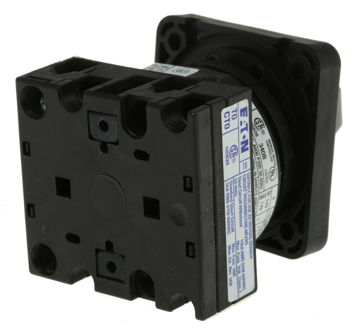 This is SP 2 Position 90° On-Off Cam Switch 690V ac 20A Rotary Actuator manufactured by Eaton. The manufacturer part number is 78627785 T0-1-8200/E/EZ-P1(RS257-9520). The given dimensions of the product include 48 x 48 x 76mm. It also carries 20a maximum current. It has a maximum 690v ac voltage . It has a throw angle 90°. Its accurate length is 48mm. The product carries possible position value of 2. Furthermore, the product is 48mm wide. The product comes in 76mm depth. The product carries rotary actuator. It has sp pole and throw configuration. The terminal is a screw type.