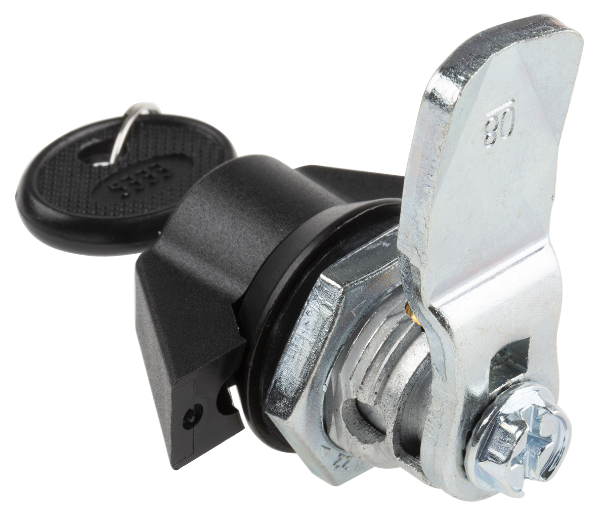 This is Cabinet Lock Key to unlock Panel to Tongue Depth 14.5mm Die-Cast Zinc Alloy Powder Coated Black manufactured by RS Pro. The manufacturer part number is 146-1797. It is offered with a [Output Voltage Range] unlock method . Its panel cut out is 20.2mm wide . It has a decent black colour. In addition, it has a standard 22.2mm panel cut out length . It has about 22.2 x 20.2mm cut out panel . Its panel to tongue depth is approximately 14.5mm .