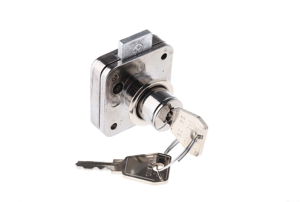 Rim Lock A multi-purpose lock suitable for drawers and cupboards etc. Features a barrel removal facility and up to 200 combinations Standard movement is 180° clockwise and the keys can be withdrawn in an open and locked position Finished in bright chrome plate, these locks can be screwed or rivet fixed Lock come complete with rosett Supplied with 2 keys