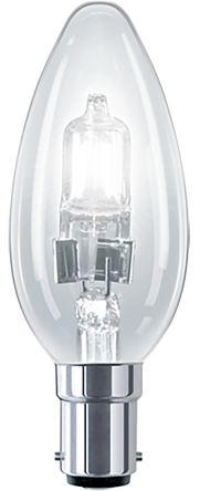 This is 28 W Clear GLS Halogen Bulb B15 Candle 240 V 36mm manufactured by Philips. The manufacturer part number is 28SBCECOCLASB35. Its diameter is 36mm. The product has a current rating of 120 ma. Moreover, the product has a nominal 240 v voltage rating. Features luminosity up to 370 lm. This product carries 28 w. It has clear lamp finish . In addition, it has about 35w incandescent equivalent wattage . The lamp base is bc / b15d. Its accurate length is 97 mm. It includes a/an candle shape lamp . Adding to this, it has a long life span for about 2000h.