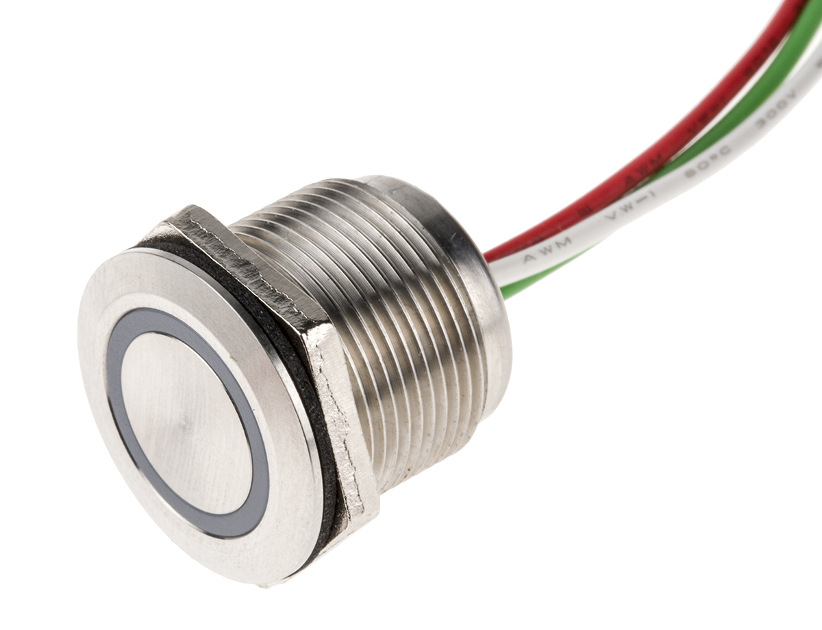This is Push Button Touch Switch Latching NC Illuminated Blue IP68 Brass 5 → 30V dc manufactured by RS Pro. The manufacturer part number is 823-2757. It provides latching switch operation. The product has a current rating of 1.5a. Illumination Option yes. It is IP rated with ip68. It is designed as a nc switching function. The LED has an adorable blue colour. The product has 5v dc of minimum input voltage. The casing is finished with an adorable metallic colour. The actuator has an adorable metallic colour. The product is made from sturdy brass materials. 30v dc is the maximum voltage of the bespoke product. Quality product with a capacitive switch type.