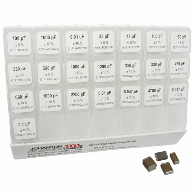 This is manufactured by Johanson Dielectrics Inc.. The manufacturer part number is S-500. It is assigned with possible HTSUS value of 8532.24.0020. The product is rohs3 compliant. It features ±5%, ±10% of tolerance value. It also exhibits voltage rating of 500v. In addition, it is reach unaffected. The product is widely employed in general purpose. It is shipped in case package . Its typical moisture sensitivity level is 1 (unlimited). It has a long 7 weeks standard lead time. It also includes 0805, 1206, 1808, 1812 (2012, 3216, 4520, 4532 metric) packages. Available in 400 pieces (assorted per value) quantity. The ceramic is designed to provide robust applications in a variety of specific settings. The splendid features of the product include high voltage. The product is available in surface mount, mlcc configuration. It features 33pf ~ 0.1µf capacitance range. The product is designated with the ear99 code number.
