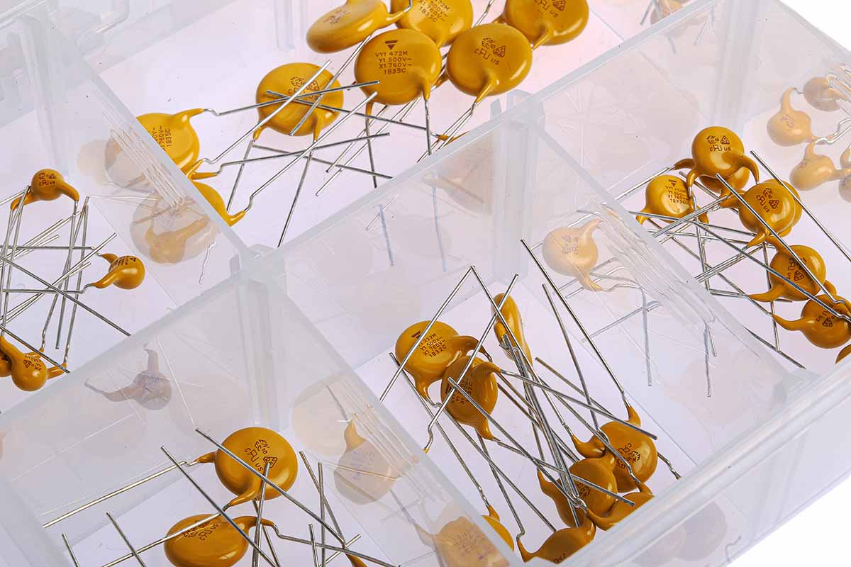 This is Through Hole Ceramic Capacitor Kit 70 pieces manufactured by Vishay. The manufacturer part number is VY11-KIT-CS. The product is available in through hole configuration. It features 470 pf → 4700pf capacitance range. While the voltage range is maximum of 500 (y1) v ac, maximum of 760 (x1) v ac. Moreover, the product is constructed from highly ceramic dielectric material. The product consists of 70 pieces.