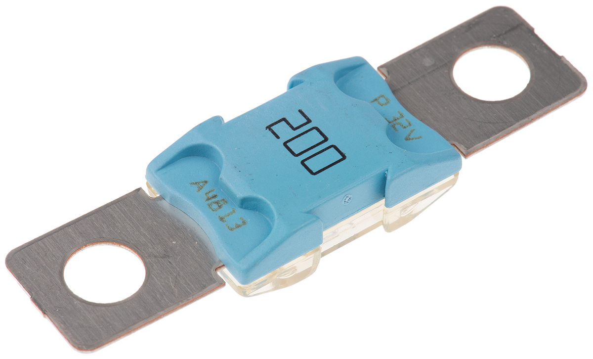 This is 200A Blue BF2 Car Fuse 32V dc manufactured by Littelfuse. The manufacturer part number is 153.5395.6201. The product has a current rating of 200a. Moreover, the product has a nominal 32v dc voltage rating. It has a decent blue colour. The product's body is nicely designed from thermoplastic materials. In addition, the height is 10.4mm. Furthermore, the product is 18.8mm wide. Its accurate length is 67.3mm. It integrates a bf2 fuse type. The product has 2000 a breaking capacity at maximum voltage rating.