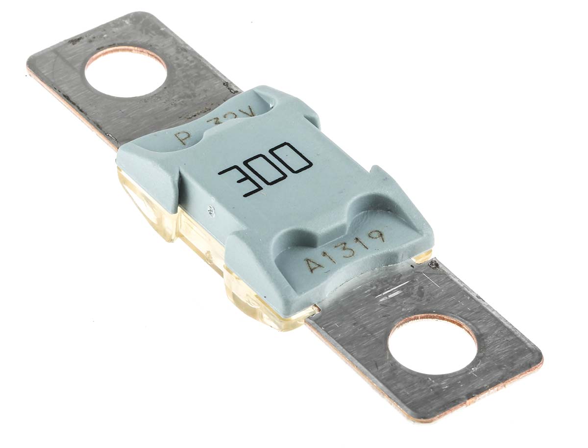 This is 300A Grey BF2 Car Fuse 32V dc manufactured by Littelfuse. The manufacturer part number is 153.5395.6301. The product has a current rating of 300a. Moreover, the product has a nominal 32v dc voltage rating. It has a decent grey colour. The product's body is nicely designed from thermoplastic materials. In addition, the height is 10.4mm. Furthermore, the product is 18.8mm wide. Its accurate length is 67.3mm. It integrates a bf2 fuse type. The product has 2000 a breaking capacity at maximum voltage rating.