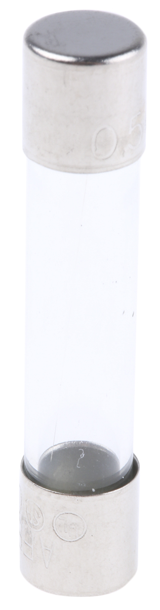 This is Glass Cartridge Fuse 500mA Fuse Speed F 6.3 x 32mm manufactured by RS Pro. The manufacturer part number is 668-6029. The product has a current rating of 500ma. Moreover, the product has a nominal 250v ac voltage rating. A fuse with a 6.3 x 32mm size. The product's body is nicely designed from glass materials. The fuse has a robust f speed.