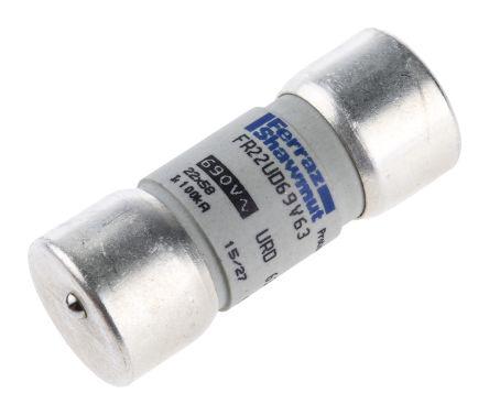 This is Cartridge Fuse FF 63A 22 x 58mm manufactured by Mersen. The manufacturer part number is T094823J. Its diameter is 22mm. The product has a ar application category. The product has a current rating of 63 a. Moreover, the product has a nominal 690 v ac voltage rating. Moreover, it has a high rupture capacity yes . The fuse has a robust ff speed. It has an overall length of 58mm. Furthermore, the product has an overall dimensions of 22 x 58mm. The product has 100 ka breaking capacity at maximum voltage rating.