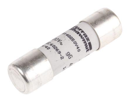 This is Ceramic Cartridge Fuse 40A 14 x 51mm manufactured by Mersen. The manufacturer part number is X218198J. Its diameter is 14mm. The product has a gg application category. The product has a current rating of 40 a. Moreover, the product has a nominal 500 v ac voltage rating. A fuse with a 14 x 51mm size. The product's body is nicely designed from ceramic materials. Moreover, it has a high rupture capacity yes . It has an overall length of 51mm. The product has 120 ka breaking capacity at maximum voltage rating.