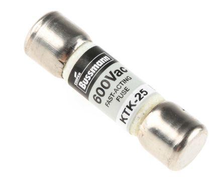 This is LIMITRON KTK Melamine Cartridge Fuse 25A Fuse Speed F 10 x 38mm manufactured by Cooper Bussmann. The manufacturer part number is KTK-25. The product has a current rating of 25 a. Moreover, the product has a nominal 600 v ac voltage rating. The product ktk, is a highly preferred choice for users. A fuse with a 10 x 38mm size. The product's body is nicely designed from melamine materials. The fuse has a robust f speed.