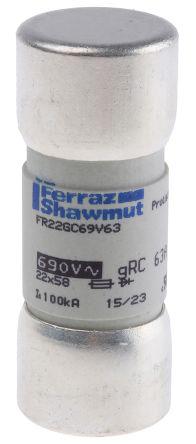This is Cartridge Fuse 63A 22 x 58mm manufactured by Mersen. The manufacturer part number is X220912J. Its diameter is 22mm. The product has a grc application category. The product has a current rating of 63 a. Moreover, the product has a nominal 690 v ac voltage rating. Moreover, it has a high rupture capacity yes . It has an overall length of 58mm. Furthermore, the product has an overall dimensions of 22 x 58mm. The product has 300 ka breaking capacity at maximum voltage rating.