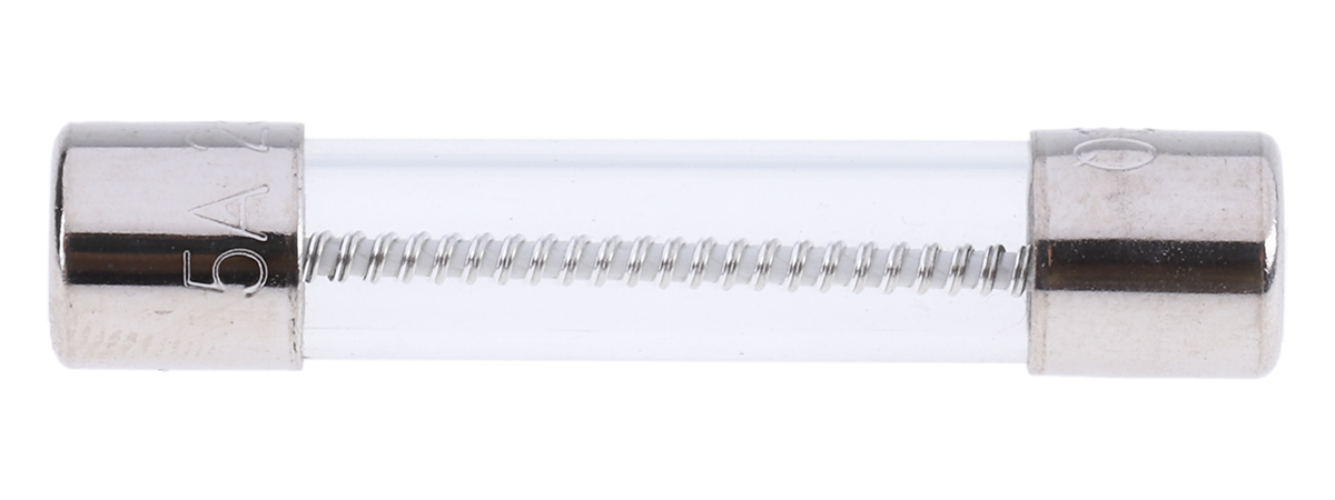 This is Glass Cartridge Fuse 5A Fuse Speed T 6.3 x 32mm manufactured by RS Pro. The manufacturer part number is 668-6089. The product has a current rating of 5a. Moreover, the product has a nominal 250v ac voltage rating. A fuse with a 6.3 x 32mm size. The product's body is nicely designed from glass materials. The fuse has a robust t speed.