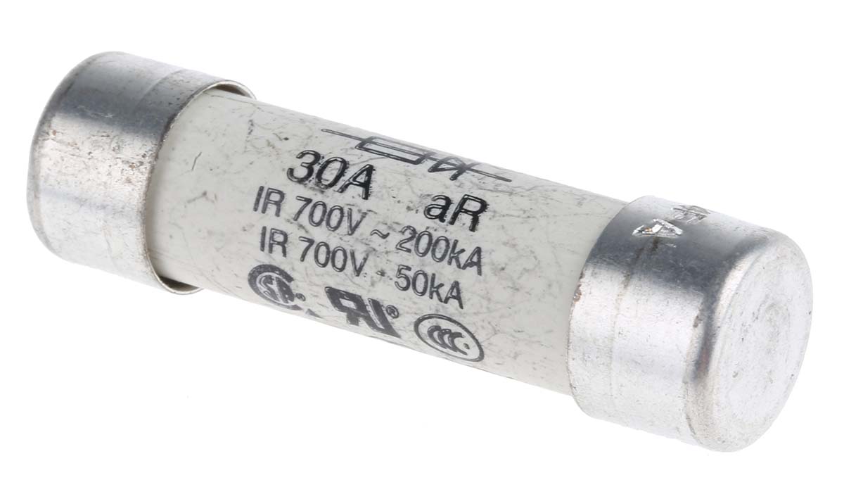 This is Cartridge Fuse F 30A 14.3 x 50.8mm manufactured by Cooper Bussmann. The manufacturer part number is FWP-30A14F. Its diameter is 14mm. The product has a ar application category. The product has a current rating of 30a. Moreover, the product has a nominal 700v ac voltage rating. The product fwp, is a highly preferred choice for users. A fuse with a 14 x 51mm size. The product's body is nicely designed from ceramic materials. The fuse has a robust f speed. It has an overall length of 51mm. Furthermore, the product has an overall dimensions of 14 x 51mm.