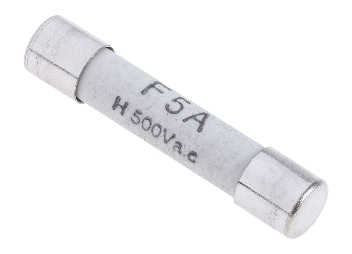 This is Cartridge Fuse F 5A 6.35 x 32mm manufactured by RS Pro. The manufacturer part number is 413-226. The product has a current rating of 5a. Moreover, the product has a nominal 500v ac voltage rating. A fuse with a 6.3 x 32mm size. The product's body is nicely designed from ceramic materials. The fuse has a robust f speed. It is of [Number of Sockets] UL class .