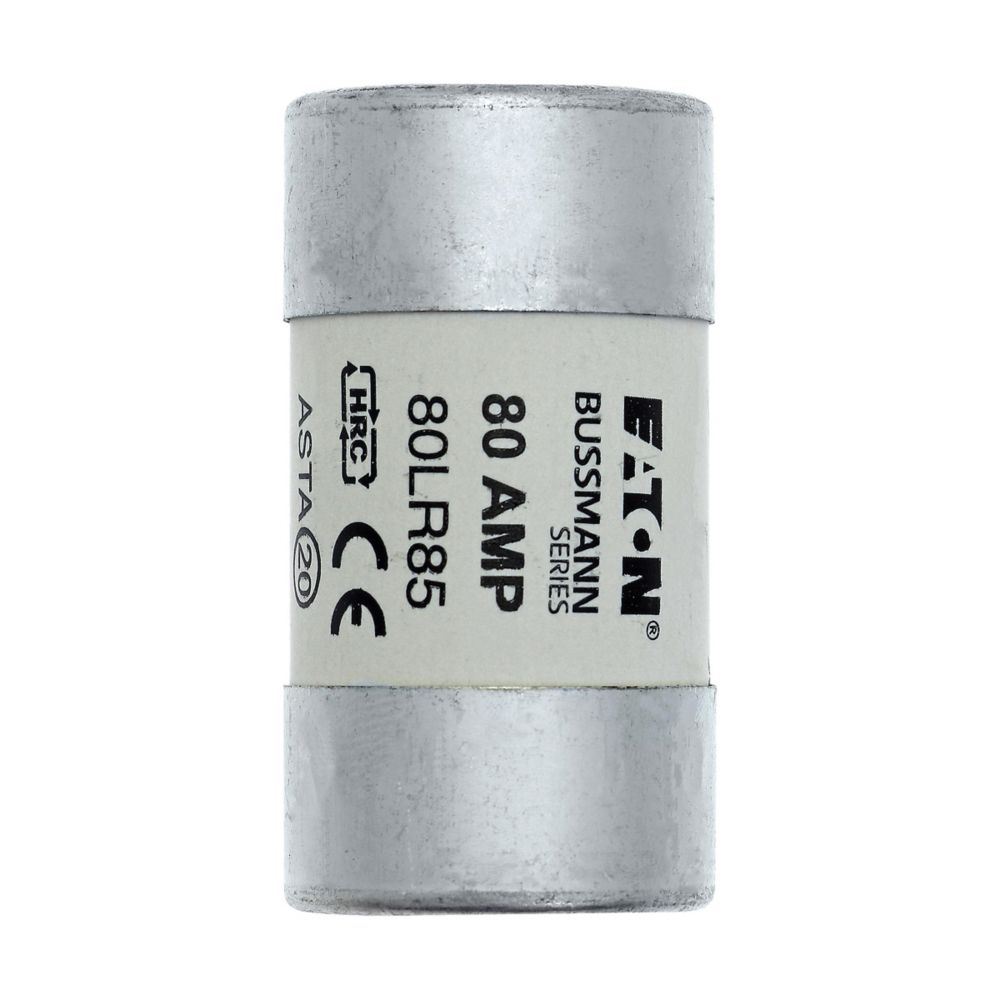 This is 80A Ceramic Cartridge Fuse 30 x 57mm manufactured by Eaton. The manufacturer part number is 80LR85. A fuse with a 30 x 57mm size. The product has a current rating of 80a. Moreover, the product has a nominal 415v voltage rating.