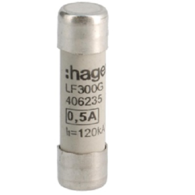 This is 500mA Cartridge Fuse 10 x 38mm manufactured by Hager. The manufacturer part number is LF300G. A fuse with a 10 x 38mm size. The product has a current rating of 500ma. Moreover, the product has a nominal 500v voltage rating.