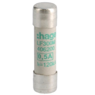 This is 500mA Cartridge Fuse 10 x 38mm manufactured by Hager. The manufacturer part number is LF300M. A fuse with a 10 x 38mm size. The product has a current rating of 500ma. Moreover, the product has a nominal 500v voltage rating.