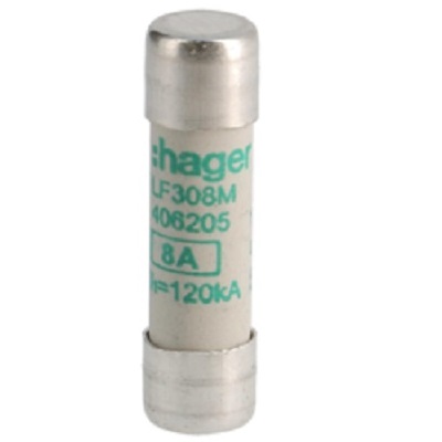This is 8A Cartridge Fuse 10 x 38mm manufactured by Hager. The manufacturer part number is LF308M. A fuse with a 10 x 38mm size. The product has a current rating of 8a. Moreover, the product has a nominal 500v voltage rating.