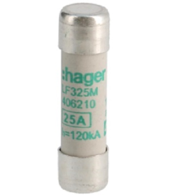 This is 25A Cartridge Fuse 10 x 38mm manufactured by Hager. The manufacturer part number is LF325M. A fuse with a 10 x 38mm size. The product has a current rating of 25a. Moreover, the product has a nominal 400v voltage rating.