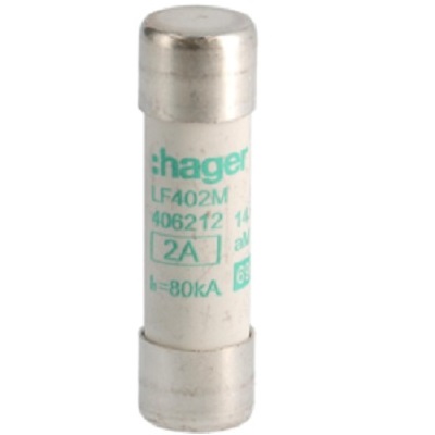 This is 2A Cartridge Fuse 14 x 51mm manufactured by Hager. The manufacturer part number is LF402M. A fuse with a 14 x 51mm size. The product has a current rating of 2a. Moreover, the product has a nominal 690v voltage rating.