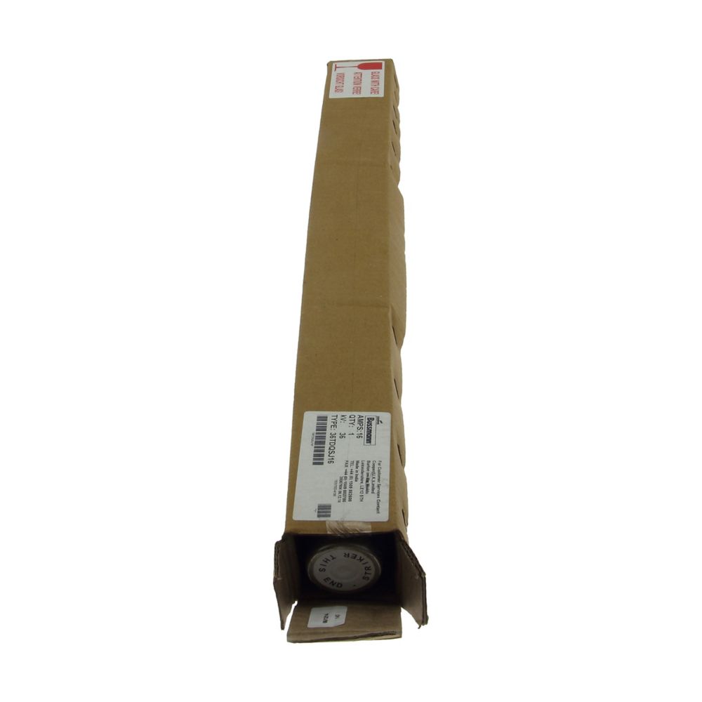 This is 16A Cartridge Fuse 51 x 537mm manufactured by Eaton. The manufacturer part number is 36TDQSJ16 36KV 16A 2" DIN Resin Seal Fuse. A fuse with a 51 x 537mm size. The product has a current rating of 16a. Moreover, the product has a nominal 36kv voltage rating.