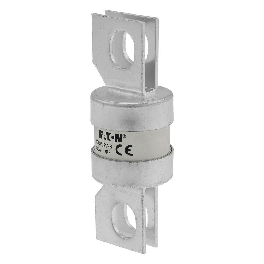 This is 400A Cartridge Fuse 38 x 110mm manufactured by Eaton. The manufacturer part number is 400PJ27-8. A fuse with a 38 x 110mm size. The product has a current rating of 400a. Moreover, the product has a nominal 415v voltage rating.