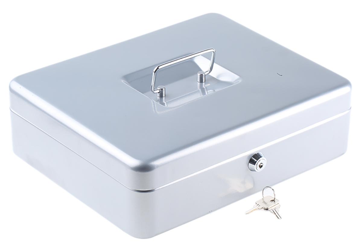 This is Petty Cash Box manufactured by Rottner Comsafe. The manufacturer part number is T02902. Furthermore, the product is 300mm wide. The product comes in 245 mm depth. It has a decent silver colour. In addition, the height is 90 mm.