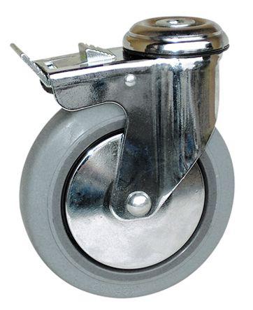 This is Stem Swivel Castors 90daN Rubber tyres manufactured by Guitel. The manufacturer part number is 145321420. The tyre of the product is made up of rubber material . The splendid features of the product include easy access brake pedal, non-marking, quiet operation. The product is available in single bolt configuration. It includes brake yes . Moreover, it has 158mm of overall height. It can holds up to 90dan load capacity. Applications Information involves institutional. It is created for medium duty weight class . The product has a ball bearing type hub bearing . It has a wheel about 32mm in width . Its wheel diameter is about 125mm . Its hub is made using pp material . Allows swivel rotation.