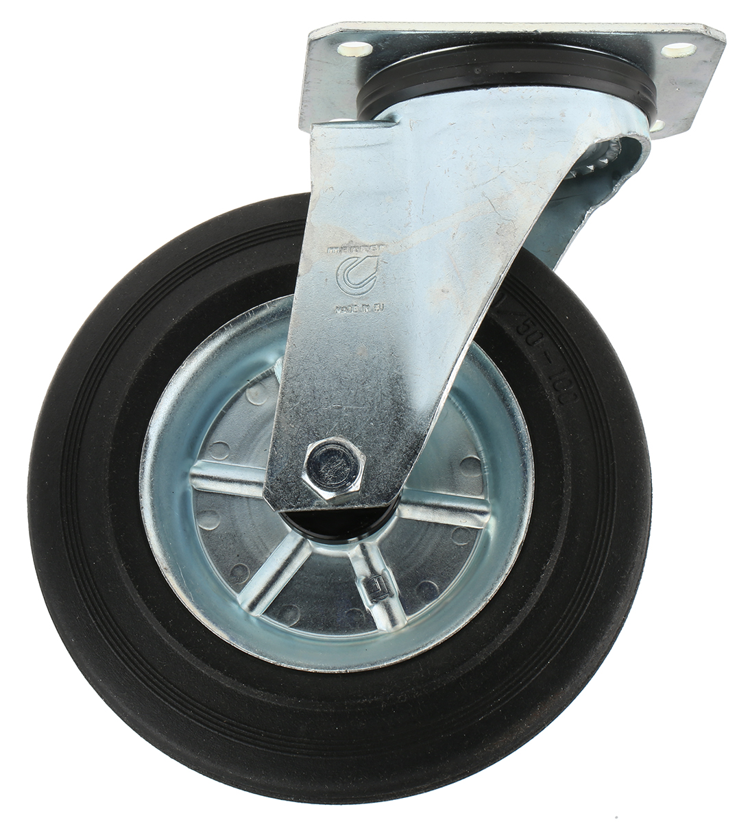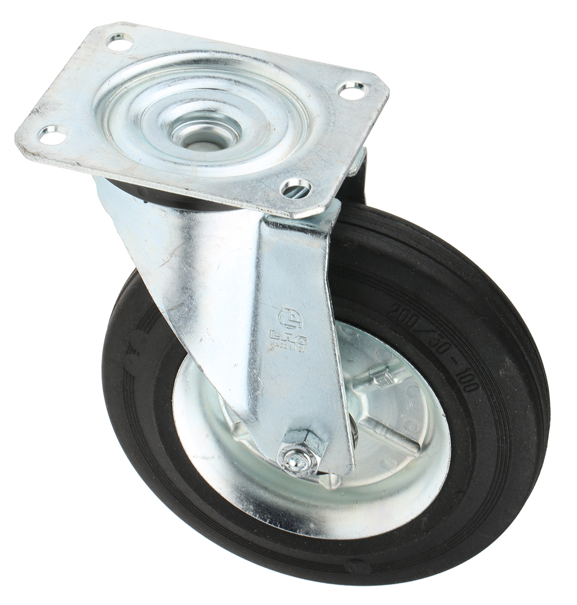 This is Swivel Castor 230kg manufactured by LAG. The manufacturer part number is 12286. The tyre of the product is made up of rubber material . Moreover, its fixing plate dimensions are 135 x 110mm . It has approximately 10mm fixing hole size . The product is available in plate configuration. It includes brake no . It has a typical 105 x 80mm fixing centres . Moreover, it has 240mm of overall height. It can holds up to 230kg load capacity. The product also features robust zinc plated steel housing material. It is created for medium duty weight class . The product has a roller bearing type hub bearing . It has a wheel about 50mm in width . Its wheel diameter is about 200mm . Its hub is made using steel material . Allows swivel rotation. Additionally, it includes 4 fixing holes .