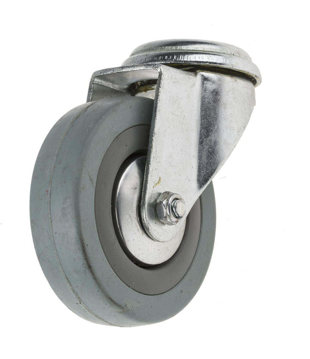 This is Stem Swivel Castors GPBH075RP 70kg Rubber tyres manufactured by RS Pro. The manufacturer part number is 828-6338. The tyre of the product is made up of rubber material . The product is available in single bolt configuration. It includes brake no . Moreover, it has 100mm of overall height. It can holds up to 70kg load capacity. It is created for light duty weight class . The product has a plain bearing type hub bearing . It has a wheel about 21mm in width . Its wheel diameter is about 75mm . Allows swivel rotation.