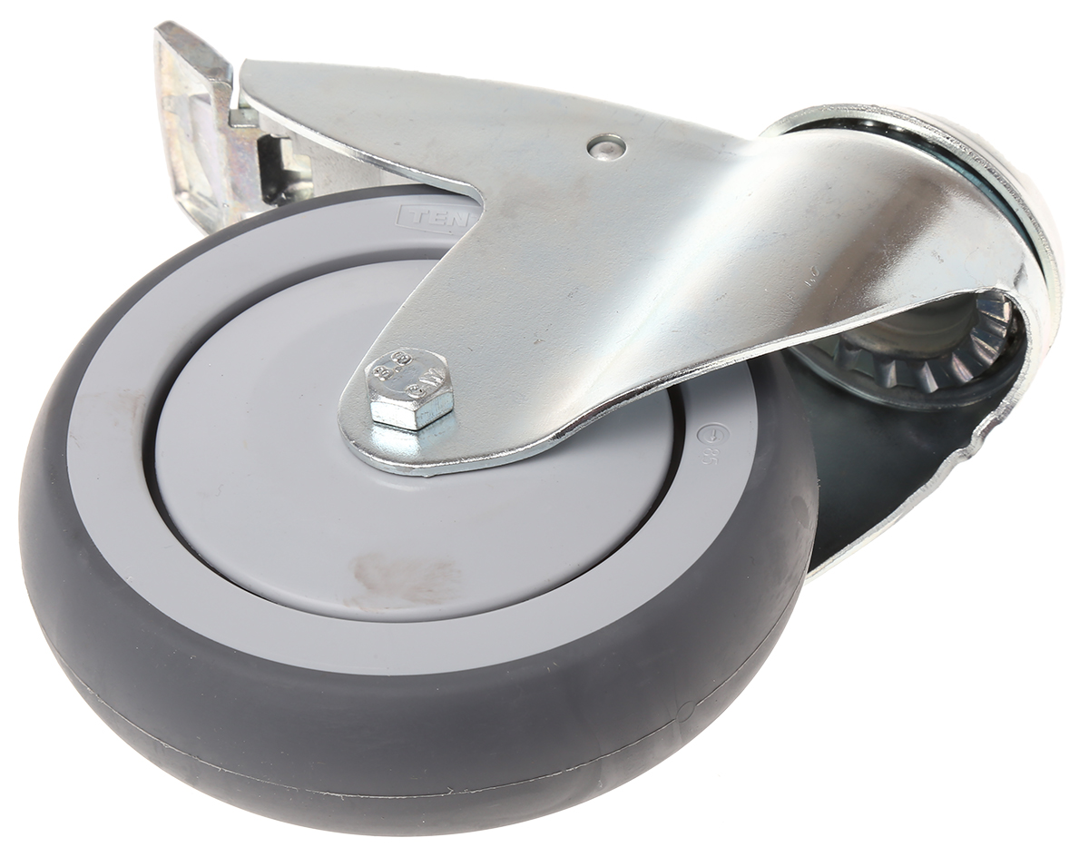 This is Stem Swivel Castors 100kg Rubber tyres manufactured by Tente. The manufacturer part number is 2477PJX125P30CHC10X90. The tyre of the product is made up of rubber material . It has approximately 10mm fixing hole size . The product is available in threaded stem configuration. It includes brake yes . Moreover, it has 162mm of overall height. It can holds up to 100kg load capacity. It is created for medium duty weight class . The product has a precision bearing type hub bearing . It has a wheel about 32mm in width . Its wheel diameter is about 125mm . Its hub is made using polypropylene material . Allows swivel rotation.