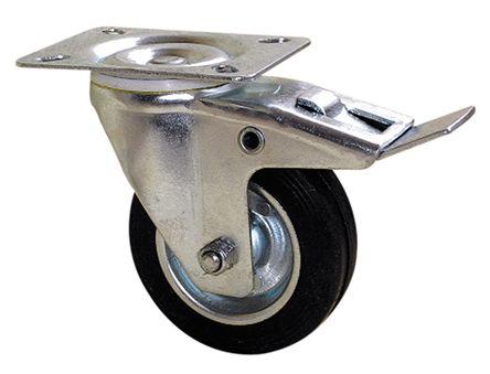 This is Swivel Castor manufactured by Guitel. The manufacturer part number is 21610520. The tyre of the product is made up of rubber material . The product is available in plate configuration. It includes brake yes . Moreover, it has 158mm of overall height. It is created for heavy duty weight class . Its wheel diameter is about 125mm . Allows braked swivel rotation.
