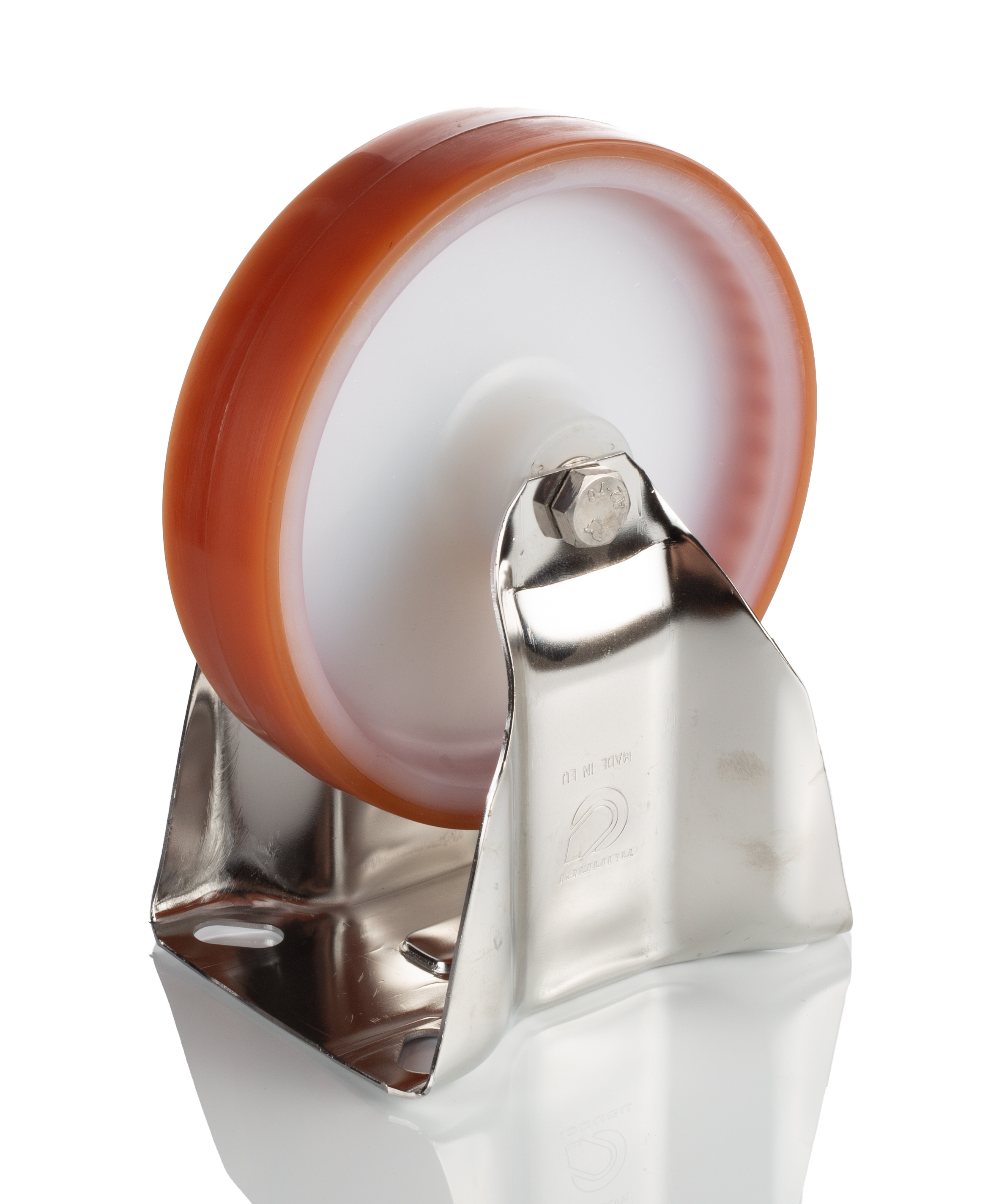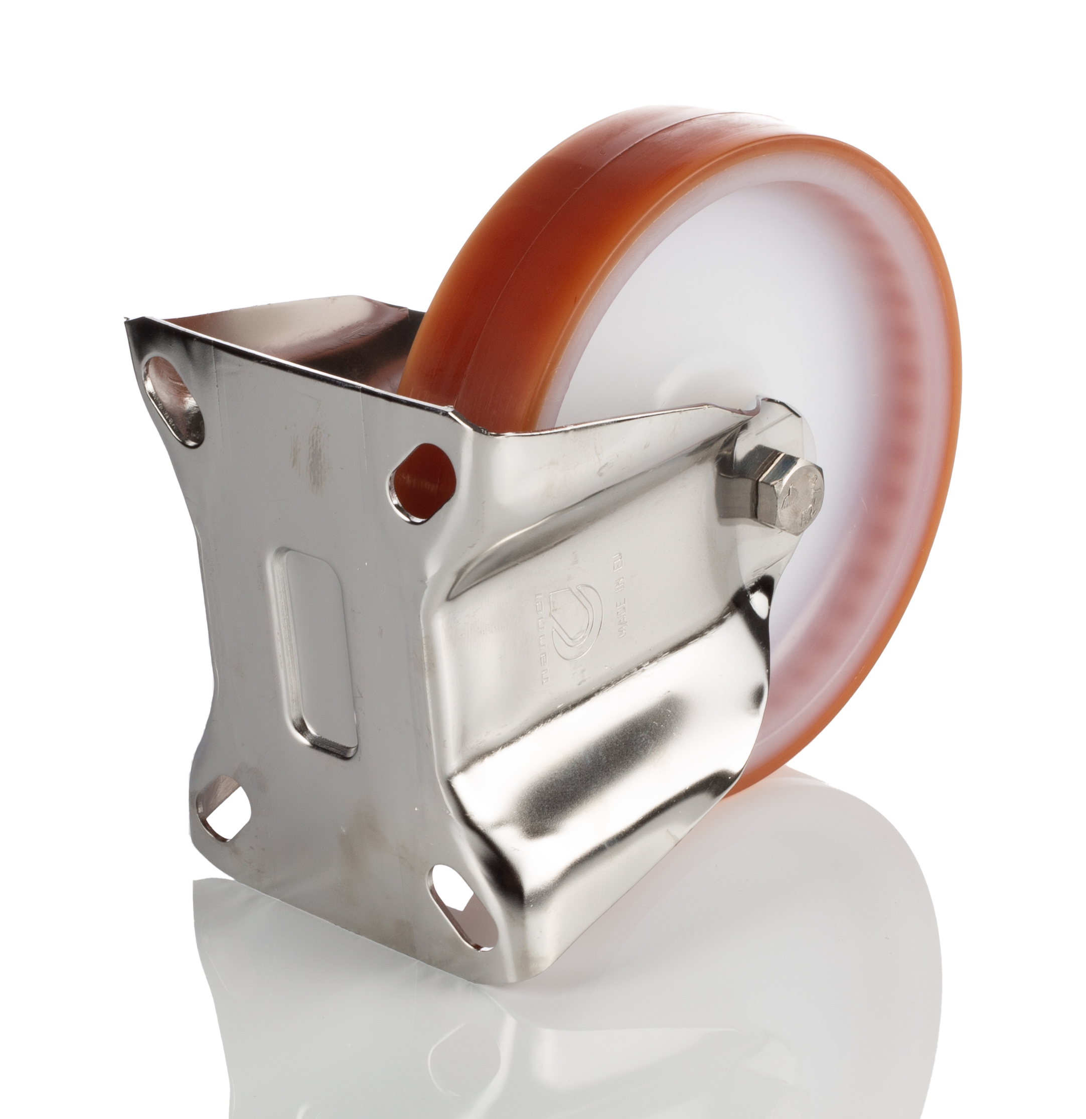 This is Fixed Castor Wheels 150kg manufactured by LAG. The manufacturer part number is 21181. The tyre of the product is made up of polyurethane material . Moreover, its fixing plate dimensions are 102 x 83mm . It has approximately 8mm fixing hole size . The product is available in plate configuration. It includes brake no . It has a typical 80 x 60mm fixing centres . Moreover, it has 154mm of overall height. It can holds up to 150kg load capacity. The product also features robust stainless steel housing material. It is created for medium duty weight class . The product has a plain bore type hub bearing . It has a wheel about 30mm in width . Its wheel diameter is about 125mm . Its hub is made using polyamide material . Allows fixed rotation. Additionally, it includes 4 fixing holes .