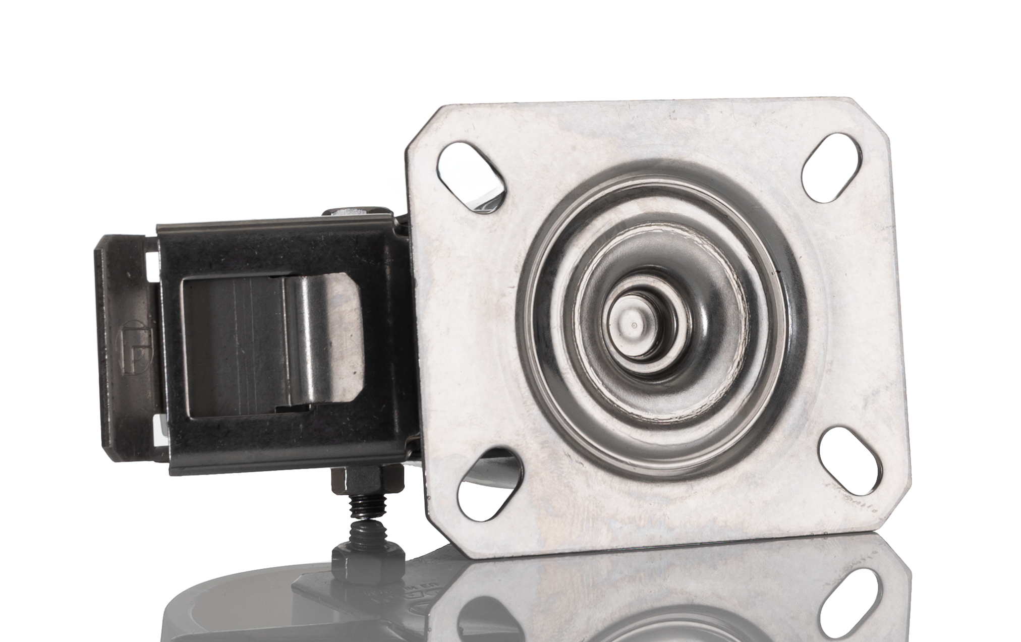 This is Swivel Castor 150kg manufactured by LAG. The manufacturer part number is 17127 FR. The tyre of the product is made up of polyamide material . Moreover, its fixing plate dimensions are 102 x 83mm . It has approximately 8mm fixing hole size . The product is available in plate configuration. It includes brake yes . It has a typical 80 x 60mm fixing centres . Moreover, it has 106mm of overall height. It can holds up to 150kg load capacity. The product also features robust stainless steel housing material. It is created for medium duty weight class . The product has a plain bore type hub bearing . It has a wheel about 30mm in width . Its wheel diameter is about 80mm . Its hub is made using polyamide material . Allows braked swivel rotation. Additionally, it includes 4 fixing holes .