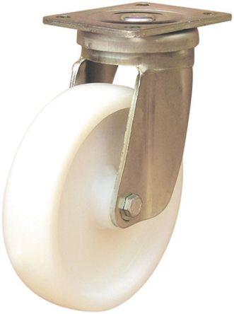 This is Swivel Castor 500daN manufactured by Guitel. The manufacturer part number is 1400551. The tyre of the product is made up of polyamide material . Moreover, its fixing plate dimensions are 140 x 110mm . It has approximately 12mm fixing hole size . The splendid features of the product include abrasion resistant, corrosion resistant. The product is available in plate configuration. It has a typical 105 x 80mm fixing centres . Moreover, it has 176mm of overall height. It can holds up to 500kg load capacity. Applications Information involves industrial. Its hub is made using polyamide material . The product has a ball bearing type hub bearing . It has a wheel about 45mm in width . Its wheel diameter is about 125mm . It is created for heavy duty weight class . Allows swivel rotation. Additionally, it includes 4 fixing holes .