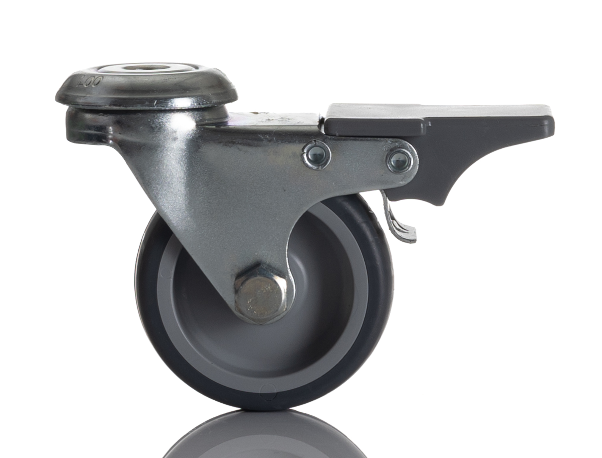 This is Stem Swivel Castors 30kg Rubber tyres manufactured by Tente. The manufacturer part number is 1475PJO050P30-8. The tyre of the product is made up of rubber material . It has approximately 8mm fixing hole size . The product is available in single bolt configuration. It includes brake yes . Moreover, it has 66mm of overall height. It can holds up to 30kg load capacity. It is created for light duty weight class . The product has a plain bore type hub bearing . It has a wheel about 23mm in width . Its wheel diameter is about 50mm . Its hub is made using polypropylene material . Allows swivel rotation. Additionally, it includes 1 fixing holes .