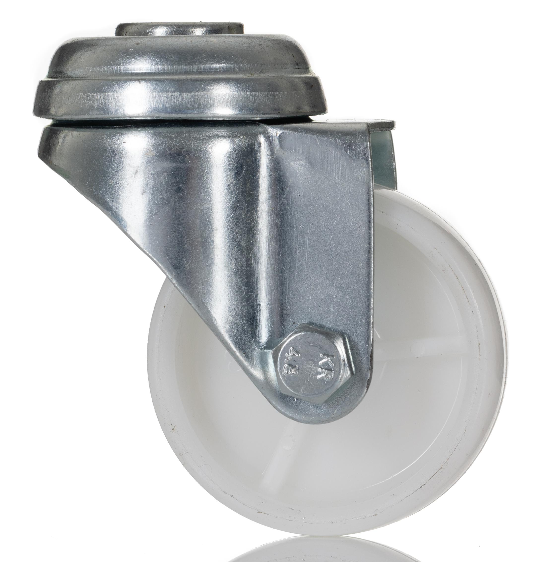 This is Stem Swivel Castors 50kg PP tyres manufactured by RS Pro. The manufacturer part number is 828-6312. The tyre of the product is made up of pp material . The product is available in single bolt configuration. It includes brake no . Moreover, it has 72mm of overall height. It can holds up to 50kg load capacity. It is created for light duty weight class . The product has a plain bearing type hub bearing . It has a wheel about 20mm in width . Its wheel diameter is about 50mm . Allows swivel rotation.